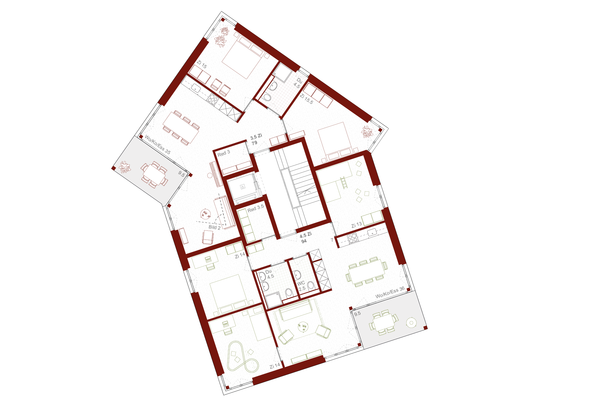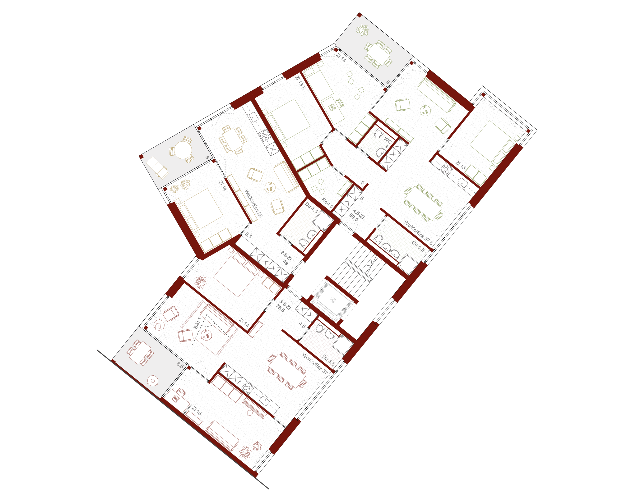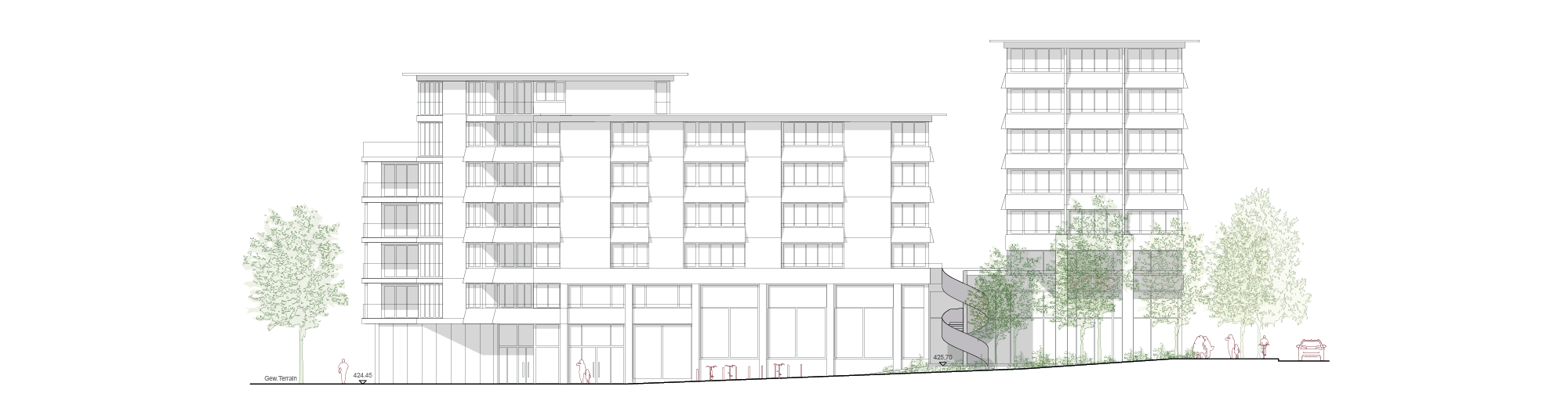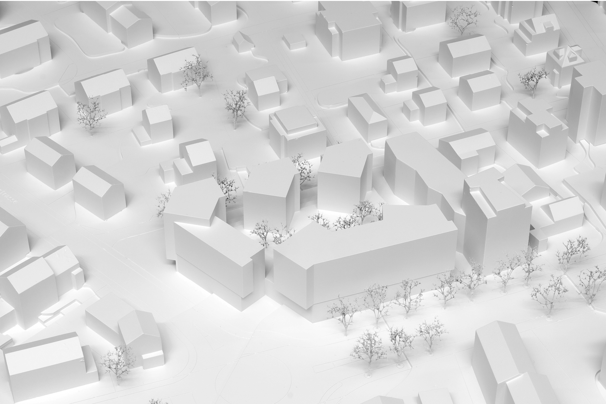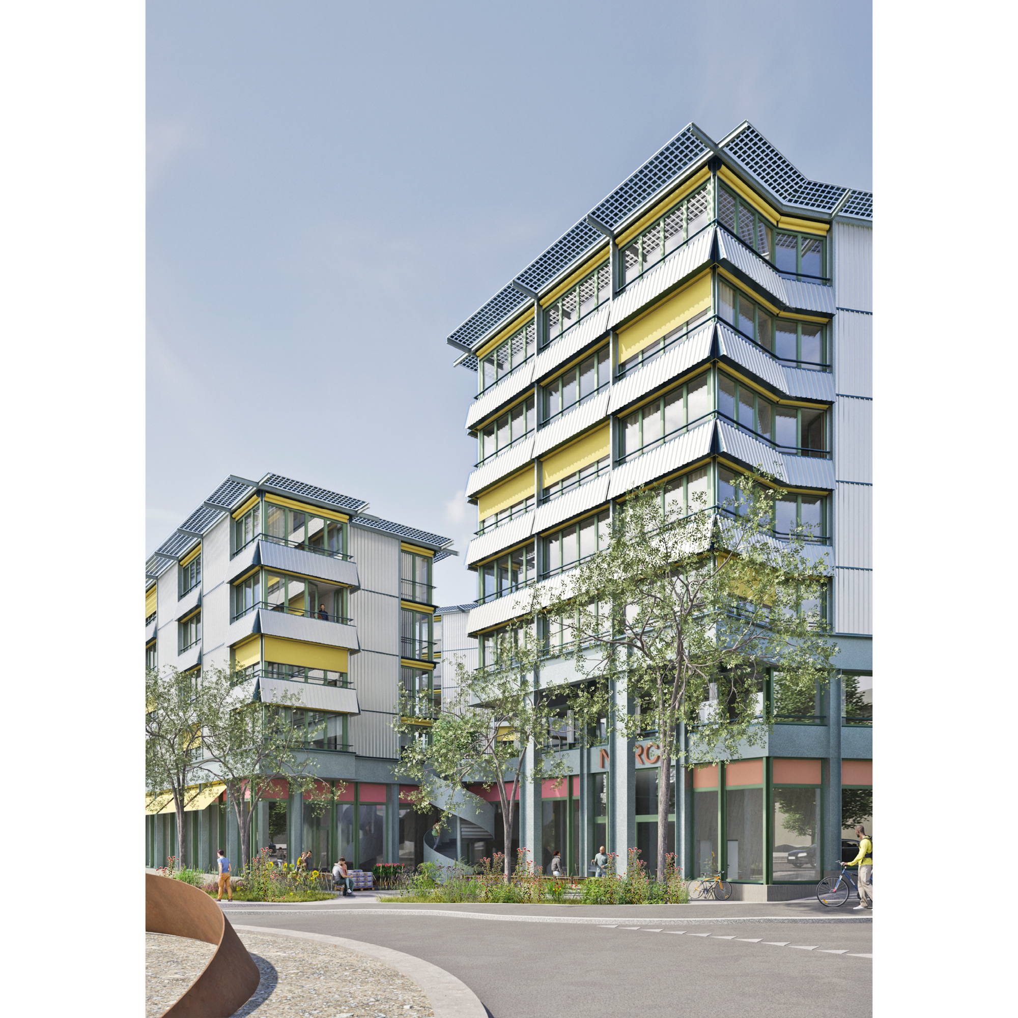 Neubau mit 70 Wohnungen, Gewerbe- und Verkaufsflächen